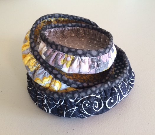 I made her these bowls - the pattern is in a book called First Steps to Free Motion Quilting by Christina Cameli: